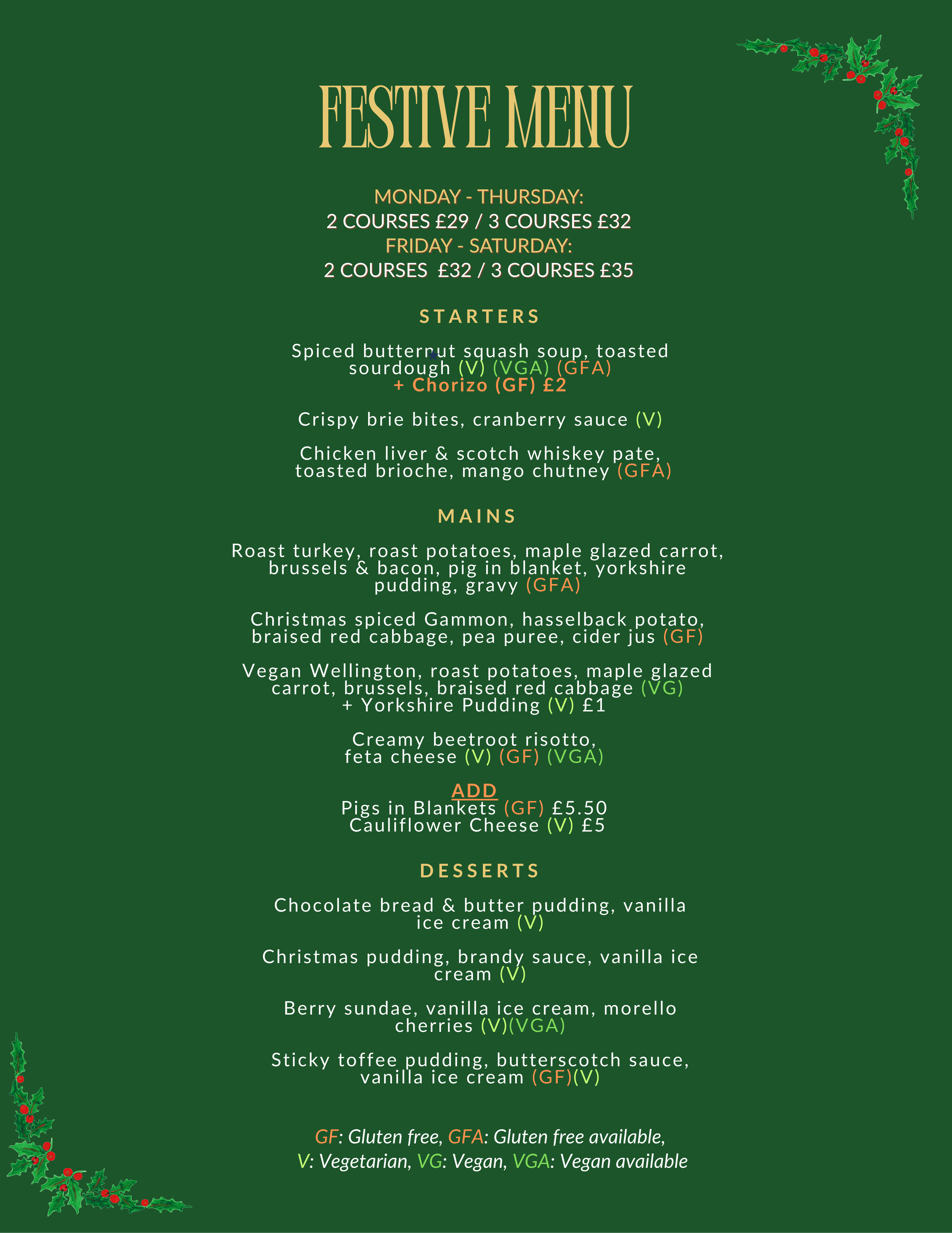 Join us this festive season to celebrate in style! Whether its friends, family or work; small or large groups - we’ve got you covered.